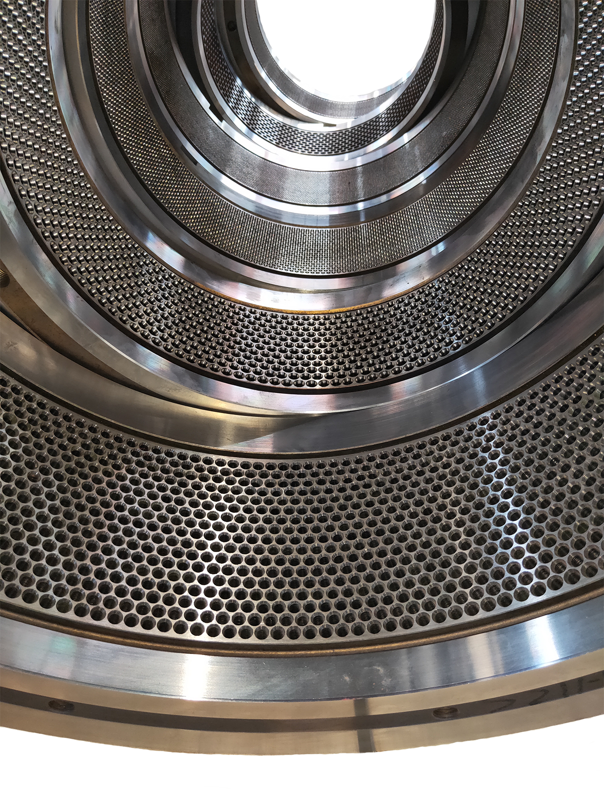 Каналы матрицы обязательно проходят шлифовку. Это улучшает проходимость сырья в матрице и уменьшает нагрев.
